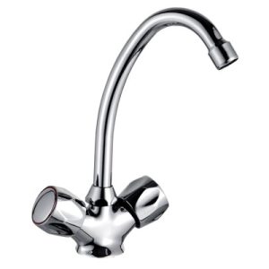 Batería fregadero 16 cm montura cerámica, volantes metal 1/2″ vuelta, caño giratorio Ø 18 mm y 23 cm largo, juego excéntricas 10 mm, con filtro atomizador