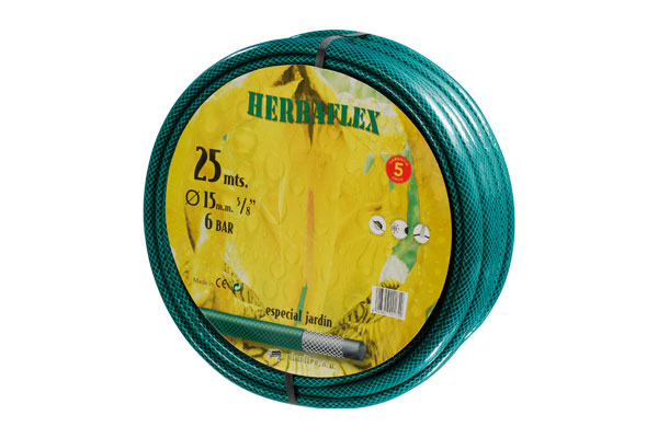 Manguera ligera de PVC alimentario (BPA free) anti-UVA con refuerzo trenzado de hilo de poliéster para mayor resistencia a la presión.