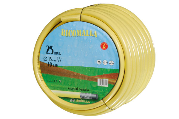 Manguera ligera de PVC alimentario (BPA free) anti-UVA con refuerzo trenzado de hilo de poliéster para mayor resistencia a la presión.